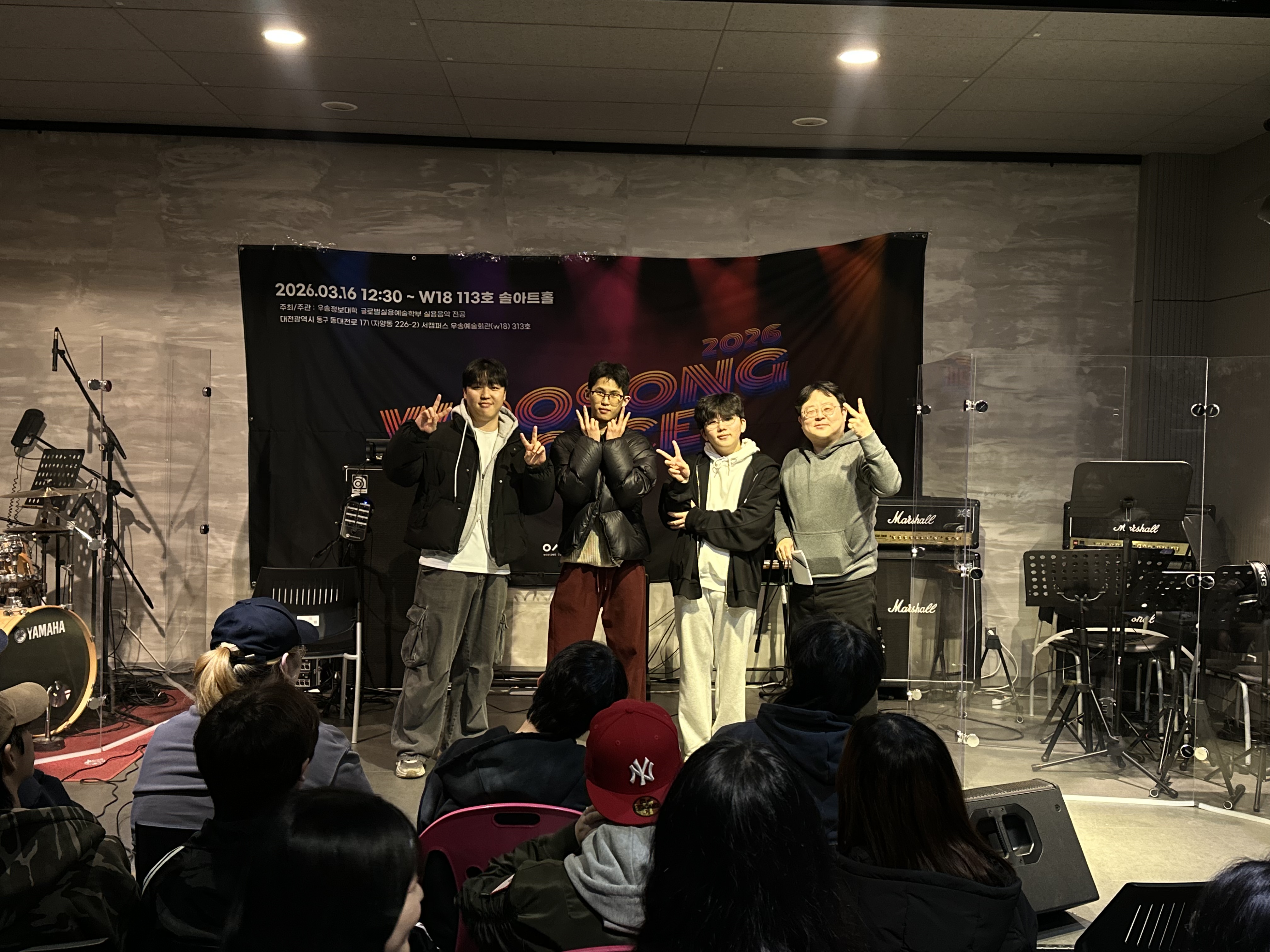 갤러리 강의자료 강의시간표 캠퍼스포토 공연포토 공연비디오 실용음악 학생 활동 학생 활동 K-POP전공 Home갤러리학생 활동 학생 활동 2026학년도 우송 보이스 Vol.2 ㅣ 보컬 전공 개강배틀 카테고리 : | 작성자 : 학과관리자 | 작성일 : 2026.03.26 | 조회수 : 19 열정과 끼가 넘쳤던 무대모두가 아티스트였던 하루!개강의 설렘을 음악으로 채우다그 모든 순간이 찬란했어요.참여한 모든 보컬전공 학생들,그리고 응원해준 여러분 덕분에이 무대가 완성됐습니다! 이번 학기도이 에너지 그대로 쭉 첨부파일 KakaoTalk_20260326_091658300_01.jpg KakaoTalk_20260326_091658300_08.jpg KakaoTalk_20260326_091658300_15.jpg KakaoTalk_20260326_091658300_27.jpg KakaoTalk_20260326_091658300_21.jpg 목록